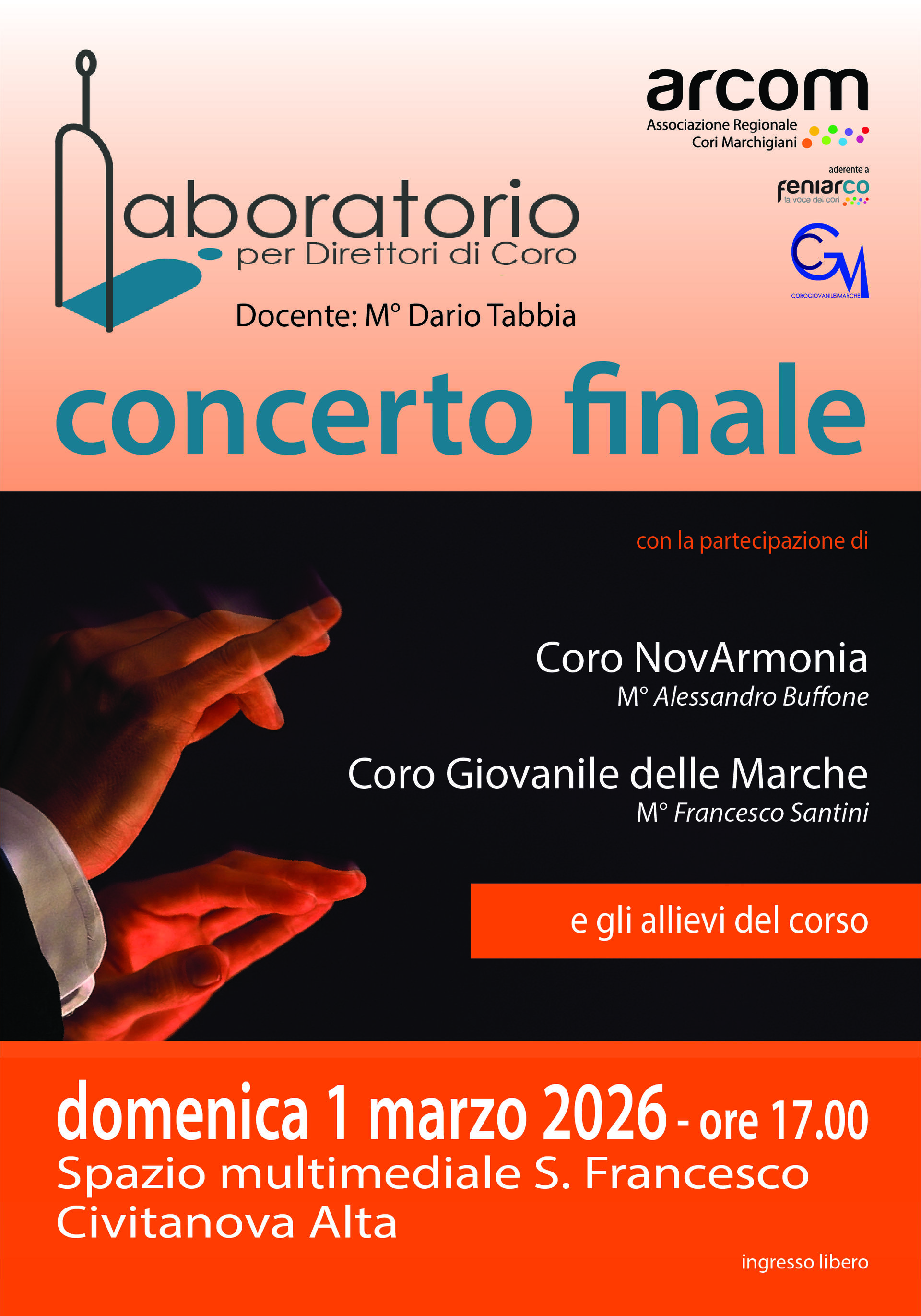 Il Laboratorio propone lo studio e la pratica delle materie fondamentali per la direzione di coro. Le lezioni saranno rivolte a chi desidera intraprendere o approfondire un percorso mirato a una corretta interpretazione del ruolo del direttore.